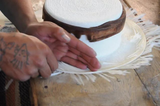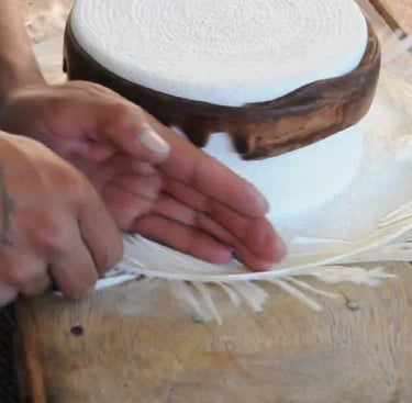 Le Sceau de l'Excellence : Après des mois de tissage silencieux, la pièce passe entre les mains d'un autre artisan : le "scelleur" (rematador). Il se charge d'arrêter les bords avant de sublimer la silhouette du chapeau grâce au moulage et au repassage traditionnel au charbon.
